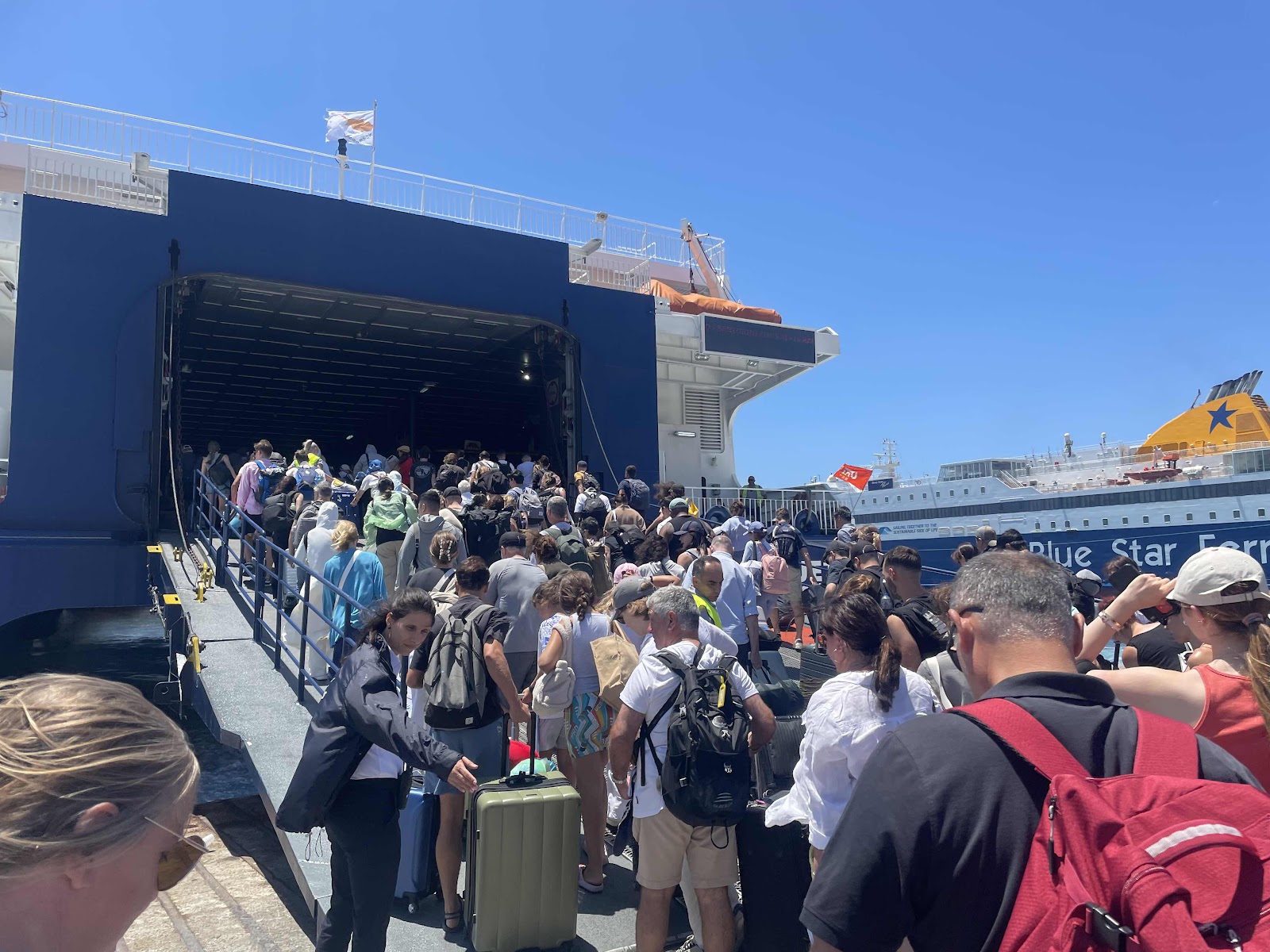 希臘渡輪延誤算常態,尤其在旺季。如果接近登船時間,仍未見自己要坐渡輪,不要慌張,可以再等等,有需要可詢問碼頭職員。另外,船公司有機會在登船前幾小時,發送有關渡輪延誤或取消安排,可以查看電郵。以我坐船由 Mykonos 到 Santorini 的經驗為例,本身渡輪12:45 啟航,但船公司在11:30 發電郵給我,因為港口繁忙 (Port traffic),要延誤至13:20。